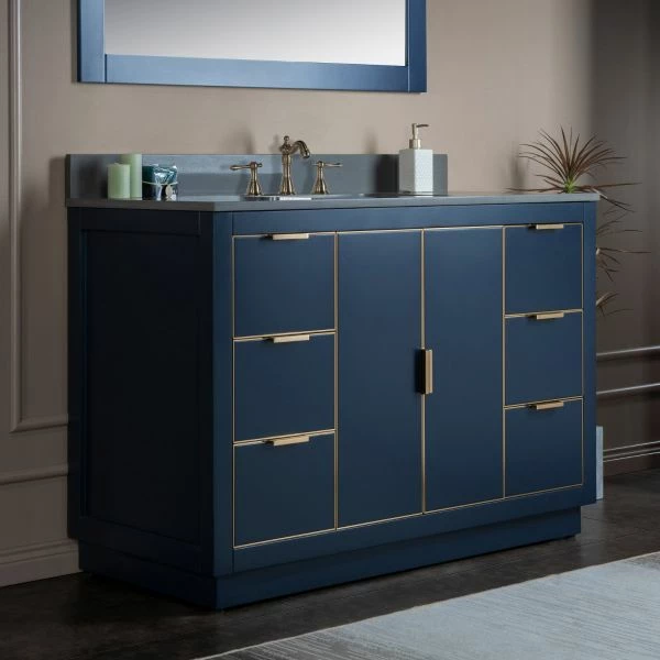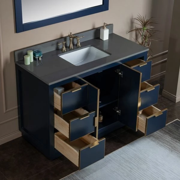 โ [DIMENSIONS]: Vanity dimensions: 48″ L x 21.5″ W x 33″ H; Engineered Stone Composite vanity top dimensions: 49″ L x 22″ W; Assembled dimensions with top and back splash: 49″ W x 22″ D x 38″ H