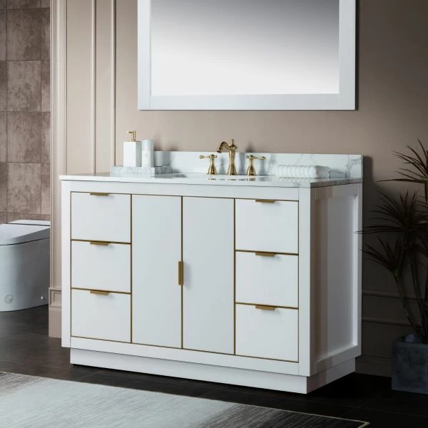 ✅ [RELIABLE and PERFORMANCE]: Soft-closing hinges and slides on drawer ensures to open and close your cabinet in quiet without noise, preventing damage to the sides around it. Dovetail jointed drawers with undercount slide; Gold door knobs a perfect match to contemporary bathroom decor. Inside and outside of the cabinet are painted with matching finish of high quality low-odor paint in layers.