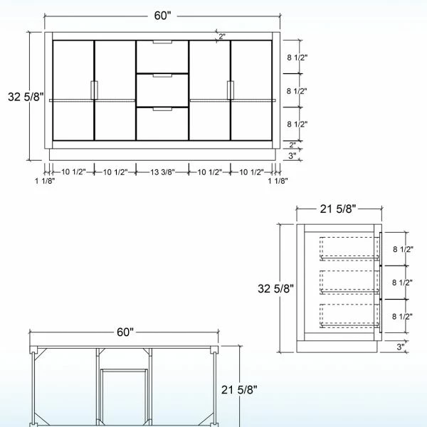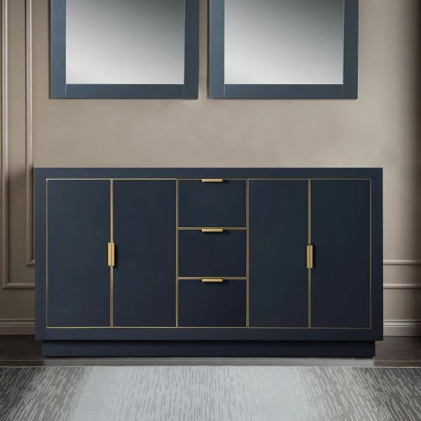 WOODBRIDGE Venice 60″x21″x33″ Solid Wood Bath Vanities Cabinet Only With Center Drawers In Grey And Gold Hardware, Venice-6021D-Grey-G