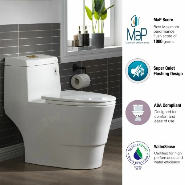 β [CERTIFICATIONS]: US & Canada UPC & Compliance with Canada standard products. High-efficiency, Water Sense Certified toilet – meet or exceed ANSI Z124. 1 & ANSI A112-19. 7οΌProducts approved and meet the Massachusetts Plumbing & Gas Code.