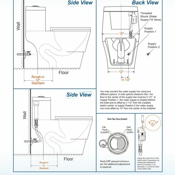 ✅ [All-In -ONE PACKAGE]: Package Includes toilet, pre-installed soft closing toilet seat, pre-installed water fitting , high quality wax ring , floor bolts , and installation instruction, also Include special hand wrench tool to easily tighten the bolts in narrow spaces.