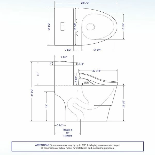✅ Include WOODBRIDGE one-piece toilet and luxury bidet seat.